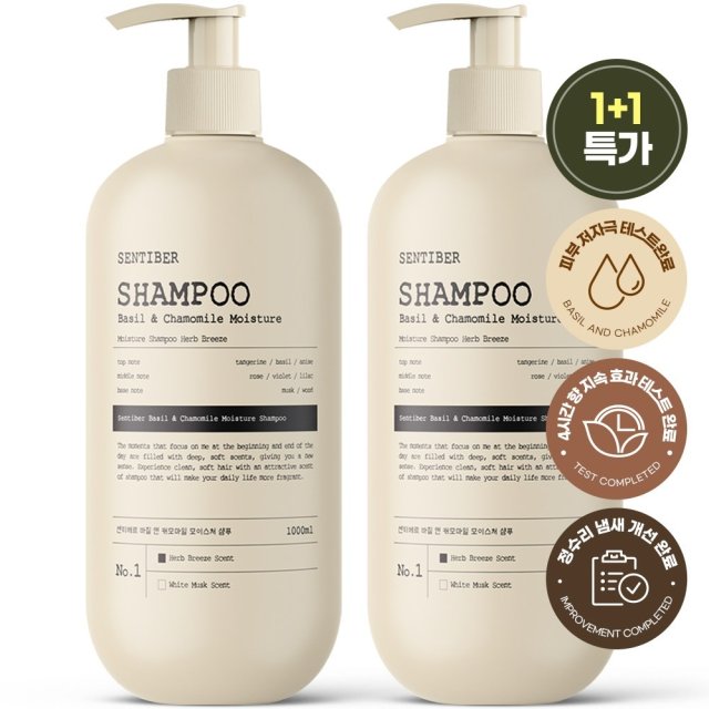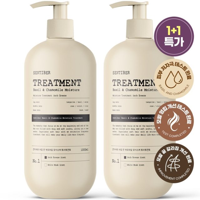 🌿1+1🌿 Sentiber 羅勒和洋甘菊大容量**護理 **1000ml+1000ml草本微風香味溫和酸度美容院蛋白質發包頭皮
