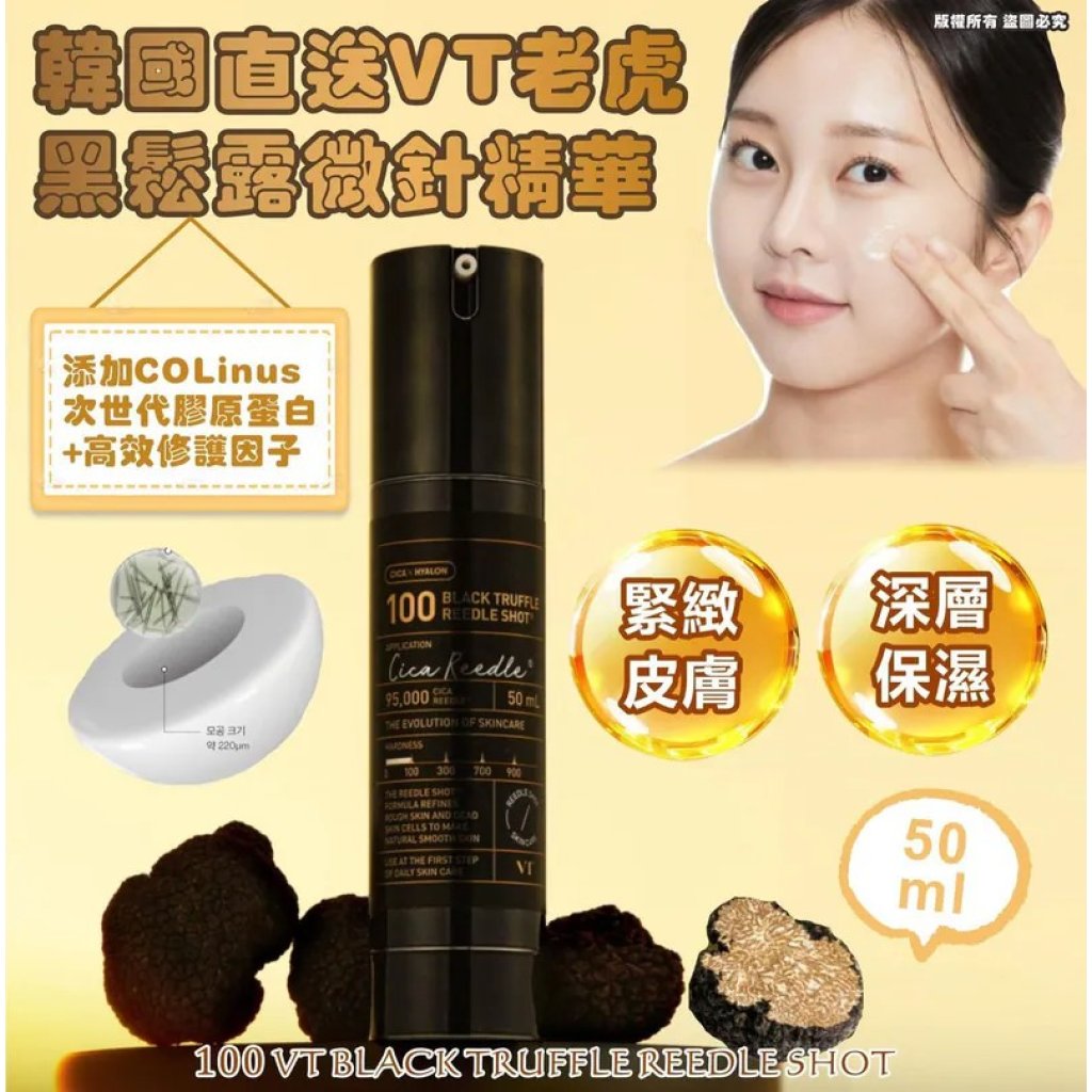 VT獨特的保濕💦和舒緩成份CICA Hyalone ,再添加🍄🟫黑松露萃取物,被稱為地下鑽石級別能夠為暗沉的肌膚提供超級強大的緊緻能量💫,令肌膚更顯光澤✨!
