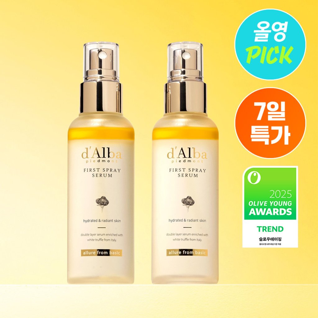 呢支超hit嘅 **d'Alba 白松露保濕噴霧精華**,而家喺韓國Olive Young獨家推出「1+1」套裝,超級抵買!✨
