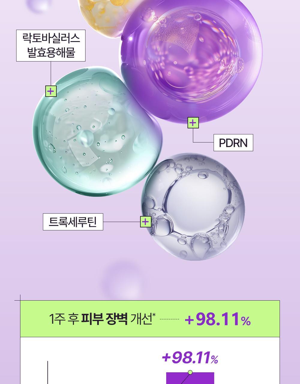 👉 低刺激性配方,通過韓國皮膚科測試✅!用 **1週後**,皮膚屏障改善率達 **98.11%**,泛紅、乾癢 bye bye~
